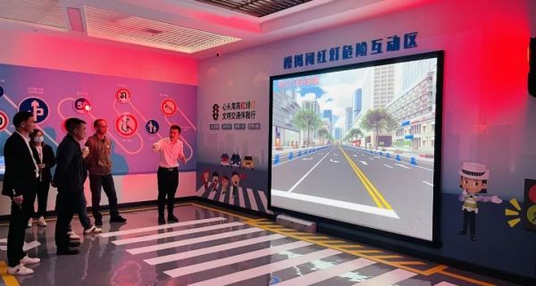 模擬闖紅燈危險(xiǎn)互動區(qū)設(shè)置了真實(shí)的信號燈,當(dāng)信號燈為綠色時(shí),參觀者可以正常通行,但當(dāng)信號燈為紅色時(shí),系統(tǒng)檢測到有行人通過時(shí),畫面將呈現(xiàn)慘烈碰撞場景并伴有車輛緊急剎車聲效,讓參觀者切身體驗(yàn)到闖紅燈的危害,特別對于當(dāng)前的手機(jī)低頭一族,大家需時(shí)刻保持文明交通安全的觀念。