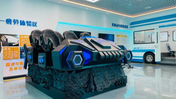 駕駛位置安全帶機(jī)構(gòu)和虛擬場景的模擬重現(xiàn),通過滑軌加速度模擬真實(shí)的撞擊感受,模擬安全氣囊正常打開,從而起到保護(hù)作用。讓參觀者真實(shí)體驗(yàn)到安全帶在駕駛過程中的重要作用及不系安全帶的危害。